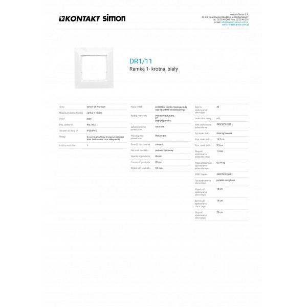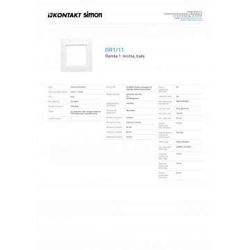 Ramka pojedyncza Kontakt-simon biały DR1/11