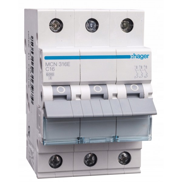 Hager wyłącznik nadprądowy 3P C 16A 6KA MCN316E