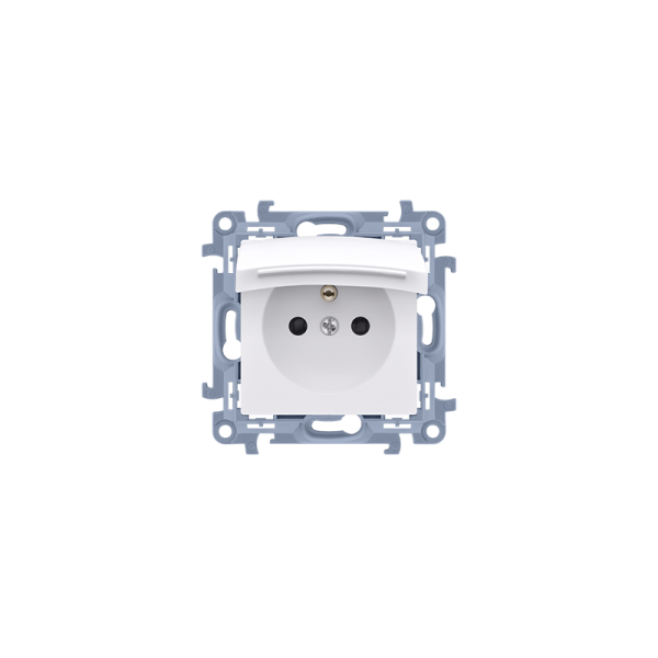 GNIAZDO POJEDYNCZE Z UZIEMIENIEM BRYZGOSZCZELNE Z KLAPKĄ MODUŁOWE SIMON 10, KOLOR BIAŁY