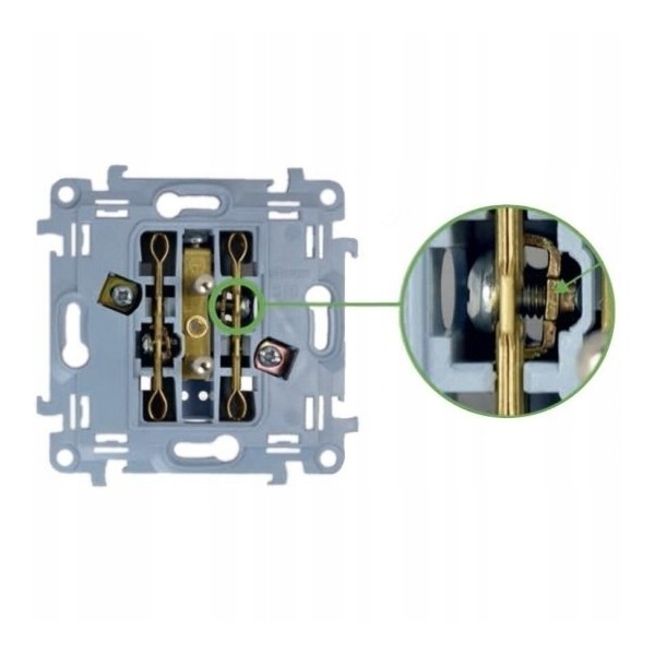 - Układ połączeń: łącznik 2x1-biegunowy (bistabilny)