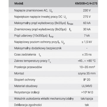 Ogranicznik przepięć warystorowy typ 1+2 4P 230V IP20 Simet 85201010
