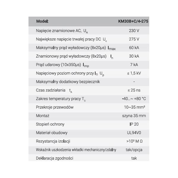 Przeznaczenie: Produkt poddany kontroli jakościowej w procesie nadzorowanym przez TŰV Rheinland. Wcześniej pod nazwą SM30B+C4P o numerze katalogowym 85201000