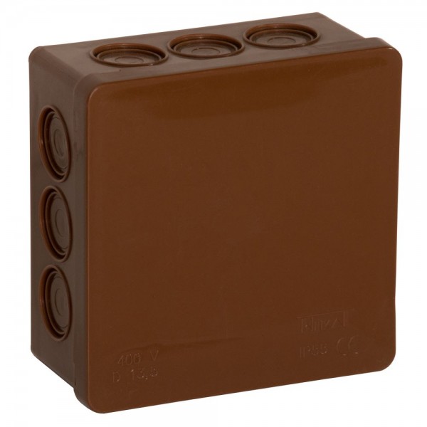 Puszka elektryczna natynkowa Viplast 86 x 86 x 40 mm, 12 wlotów - brąz