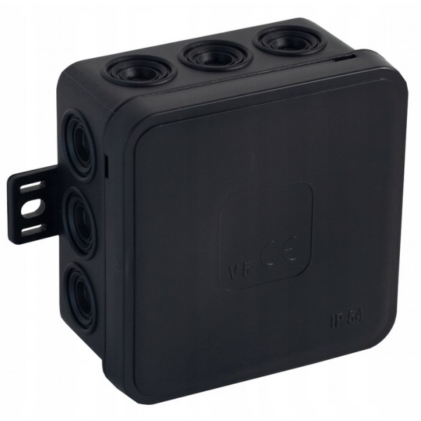 VIPLAST puszka natynkowa hermetyczna na klik IP54 75x75x41 mm, 12 wlotów - czarny