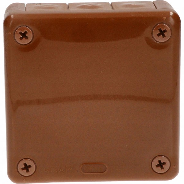 Puszka elektryczna natynkowa Viplast 98 x 98 x 42 mm, 12 wlotów, 4 wkręty - brąz