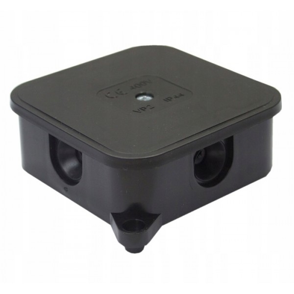 Puszka natynkowa hermetyczna 85x85x35 IP44 400V, 1 wkręt, 4 wloty, Czarny