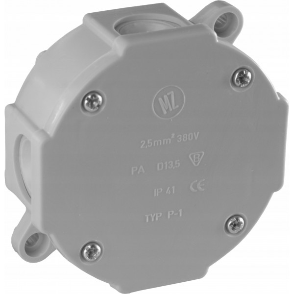 Puszka elektryczna natynkowa Viplast 79 x 79 x 37 mm, 4 wloty, 4 wkręty, Szary