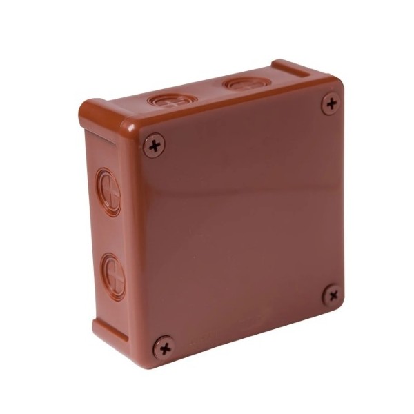 Puszka elektryczna natynkowa Viplast 118 x 118 x 46 mm, 8 wlotów, 4 wkręty, Brąz