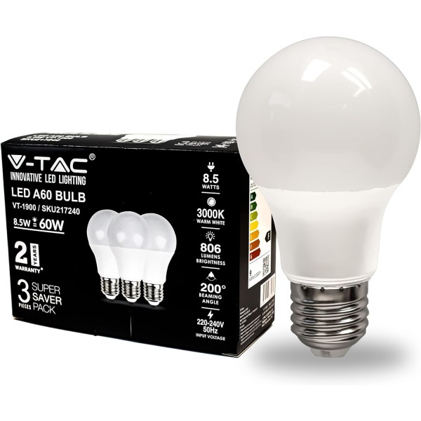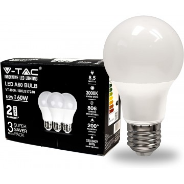 Żarówka ledowa z modułem dedykowanym SMD. Energooszczędne źródło światła przyjazne środowisku o mocy 8,5W - odpowiadające starej żarówce 60W. Kąt świecenia żarówki to 200°. Produkt posiada także certyfikaty zgodności oraz bezpieczeństwa Unii Europejskiej takie jak CE, EMC, ROHS dzięki czemu nie musimy się martwić o jakość zamawianego produktu.